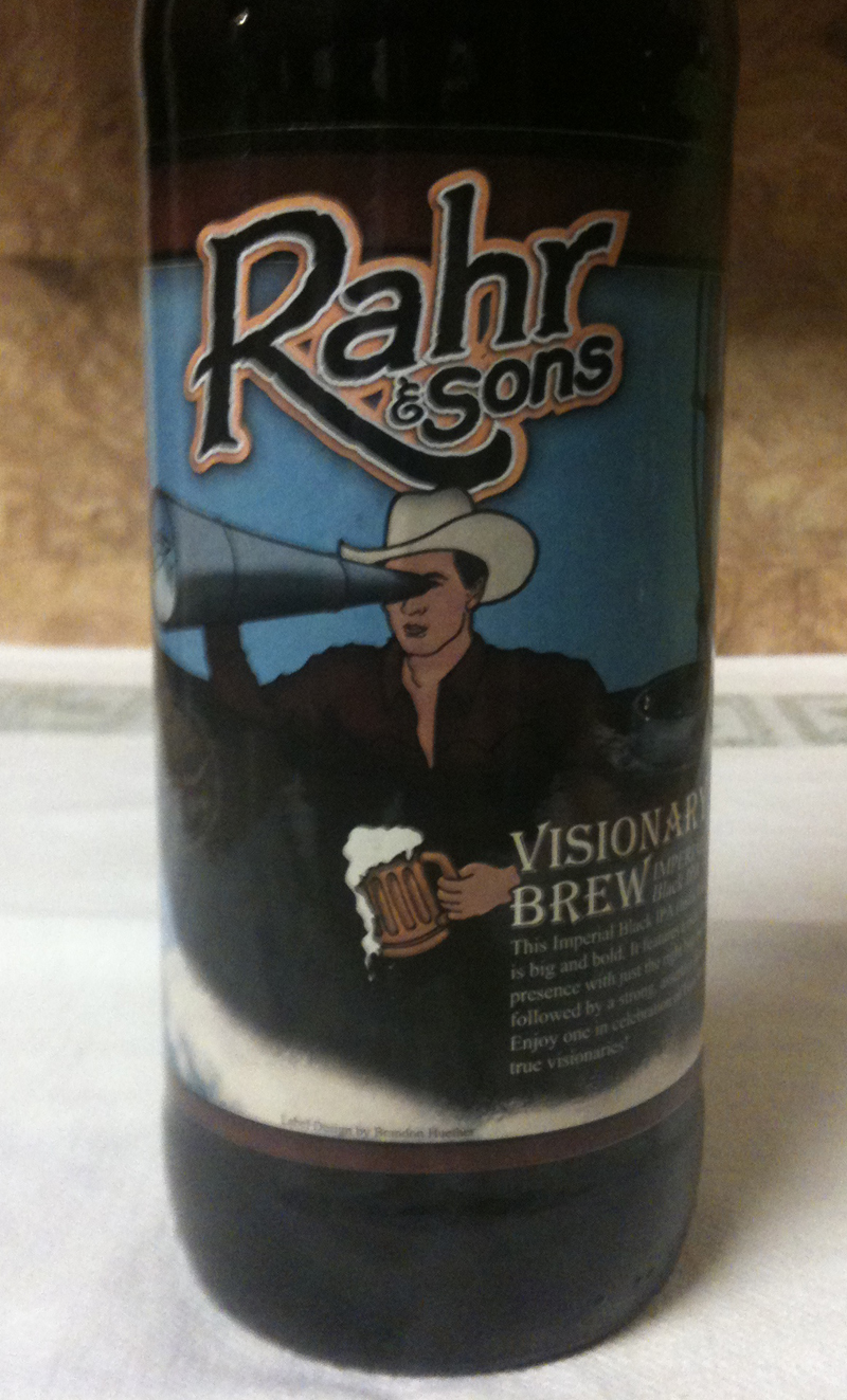 Tonight's beer is Visionary Brew Imperial Black IPA from Rahr & Sons Brewing Company. 1 pint, 6 ounce bottle.