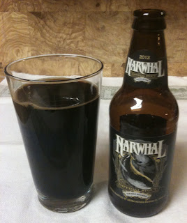 Narwhal poured with a thin, rich brown head. Beer color is a very dark, blackish brown. No light shows through the glass when held up to the light. The aroma has malt, brown sugar and a definite boozy quality. The taste is smoky and boozy. There is some bitterness, but it is hidden some by the alcohol. The aftertaste leaves you with a little sweet, bitter and smoke. I don't get as much cocoa as I normally do in a stout - this one whacks you with the smoky malt and alcohol. But I like it.